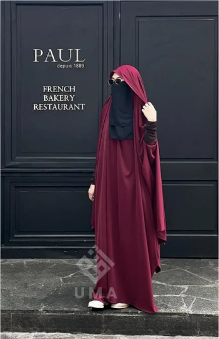 Memberikan coverage sempurna dengan tampilan syar’i yang rapi. -